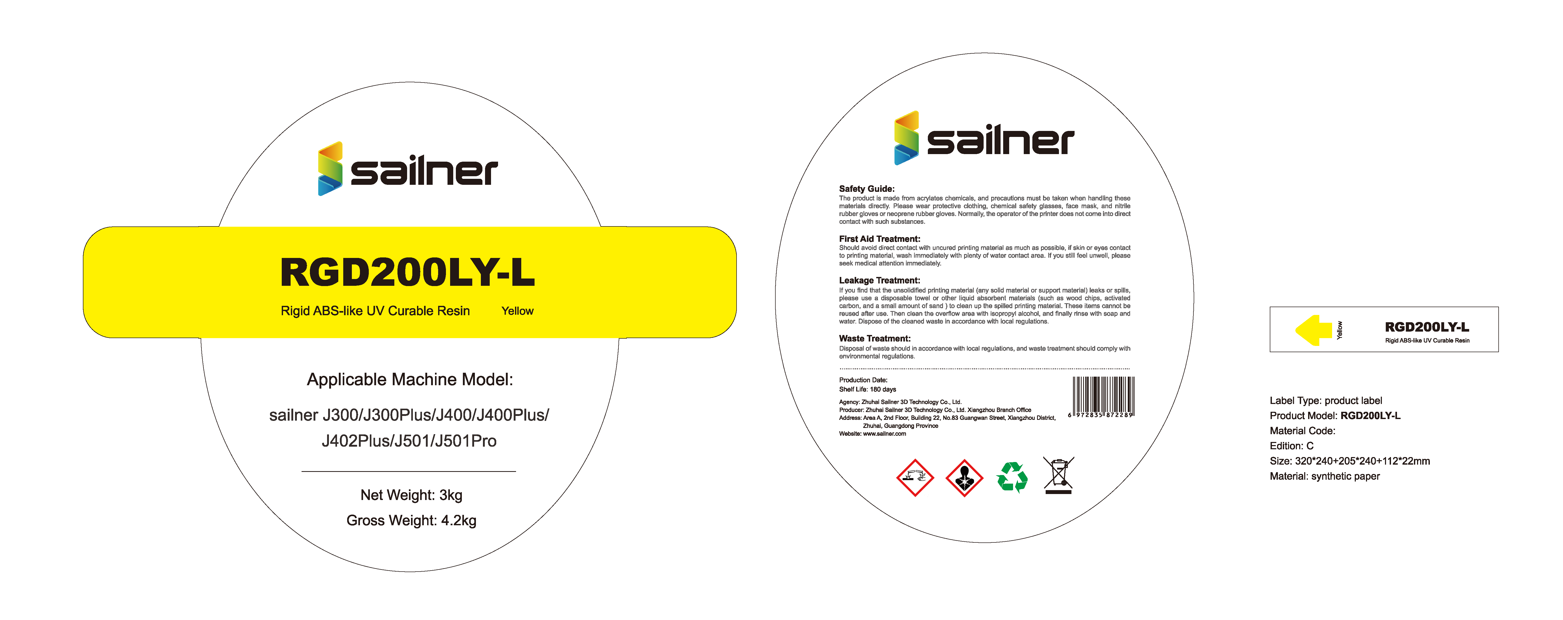sailner社の3Dプリンター「J402Plus」に対応したイエローインク3kgです。