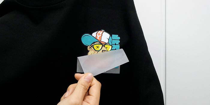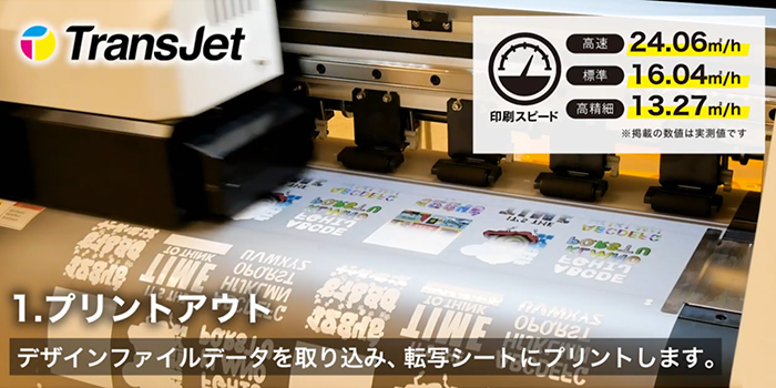 プリントしたいデザインデータを、転写シートにプリント出力します。転写シートにカラーインク、ホワイトインクの順に印刷されます。