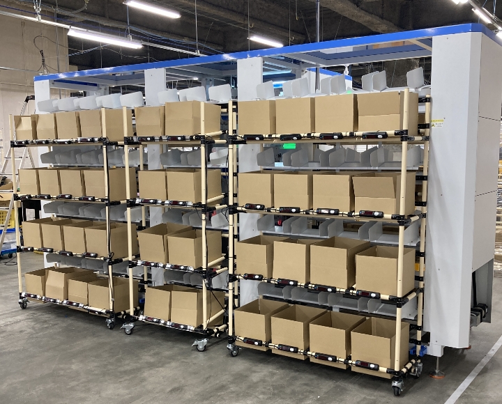 【仕分け作業を、高速化。ミスなく、空間を最大限に活用。】最大2,000個/時の高速処理で、仕分けミスをゼロに限りなく近づけます。省スペース設計の壁型タイプなので、限られた倉庫内の空間も最大限に活用可能。導入もわずか7営業日で完了します。 お客様の箱サイズや運用に合わせてカスタマイズや棚の増設にも対応。正確・スピーディー・省スペースな仕分け機が、物流現場の効率を劇的に改善します。